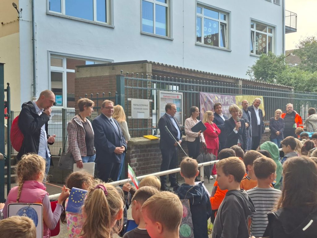 Im Rahmen eines Pilotprojekts wird während der Europäischen Mobilitätswoche vom 15. bis 19. September die Pestalozzistraße zu einer Schulstraße umfunktioniert. Das heißt, die Straße wird für den Kfz-Verkehr vor Schulbeginn und nach Schulschluss gesperrt. Eltern, die auf das Auto angewiesen sind, können ihre Kinder an einer sogenannten Elternhaltestelle aussteigen lassen. Von hier aus können die Kinder das letzte Stück zur Schule gefahrlos laufen. Gefährliche Straßen müssen nicht gekreuzt werden.